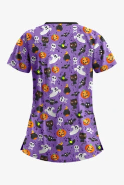 Butter-Soft Halloween Spell Purple Glow Women’s 3-Pocket Criss Cross Print Scrub Top