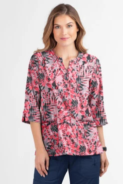 Butter-Soft Floral Field Navy Women’s 2-Pocket Scallop Neck Print Scrub Top