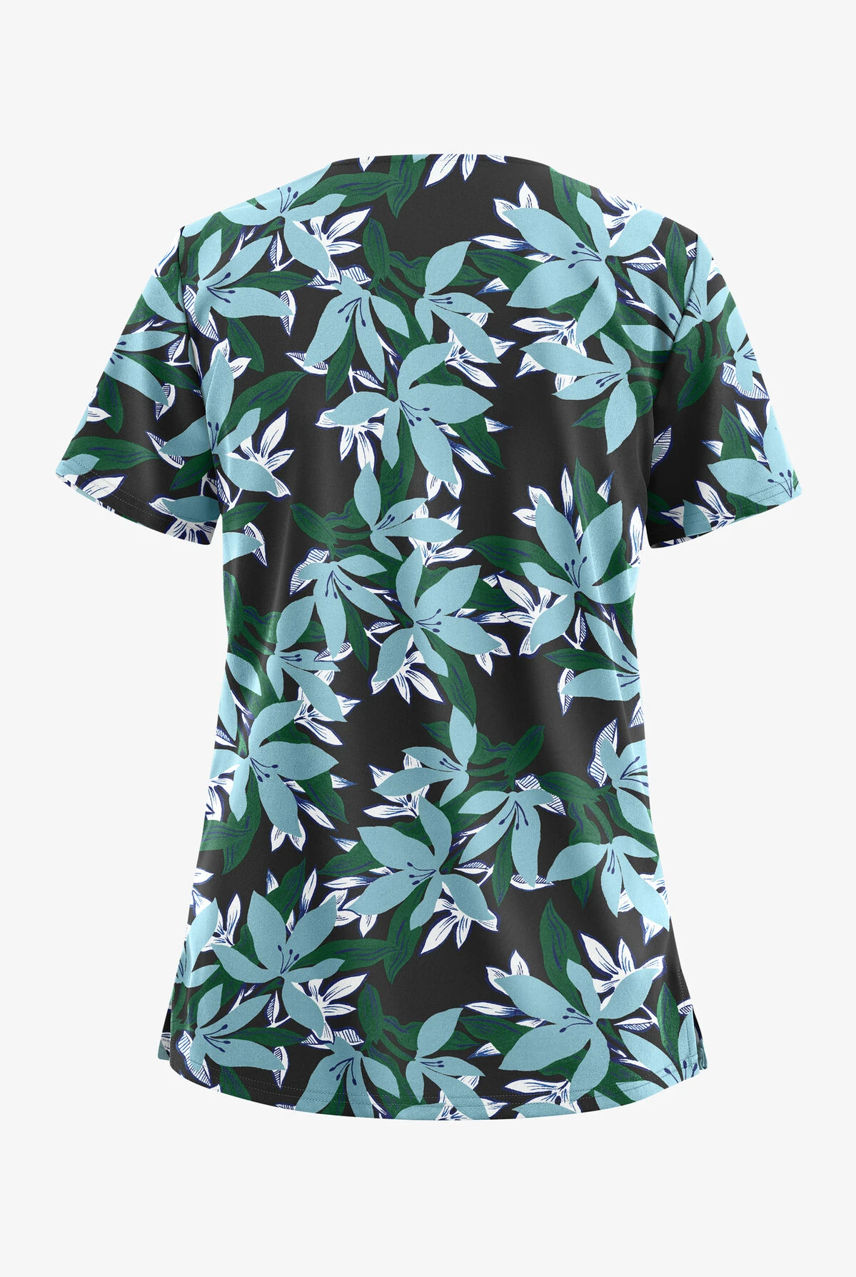 UA Butter-Soft STRETCH Happy Morning Floral Women’s 2-Pocket V-Neck Print Scrub Top