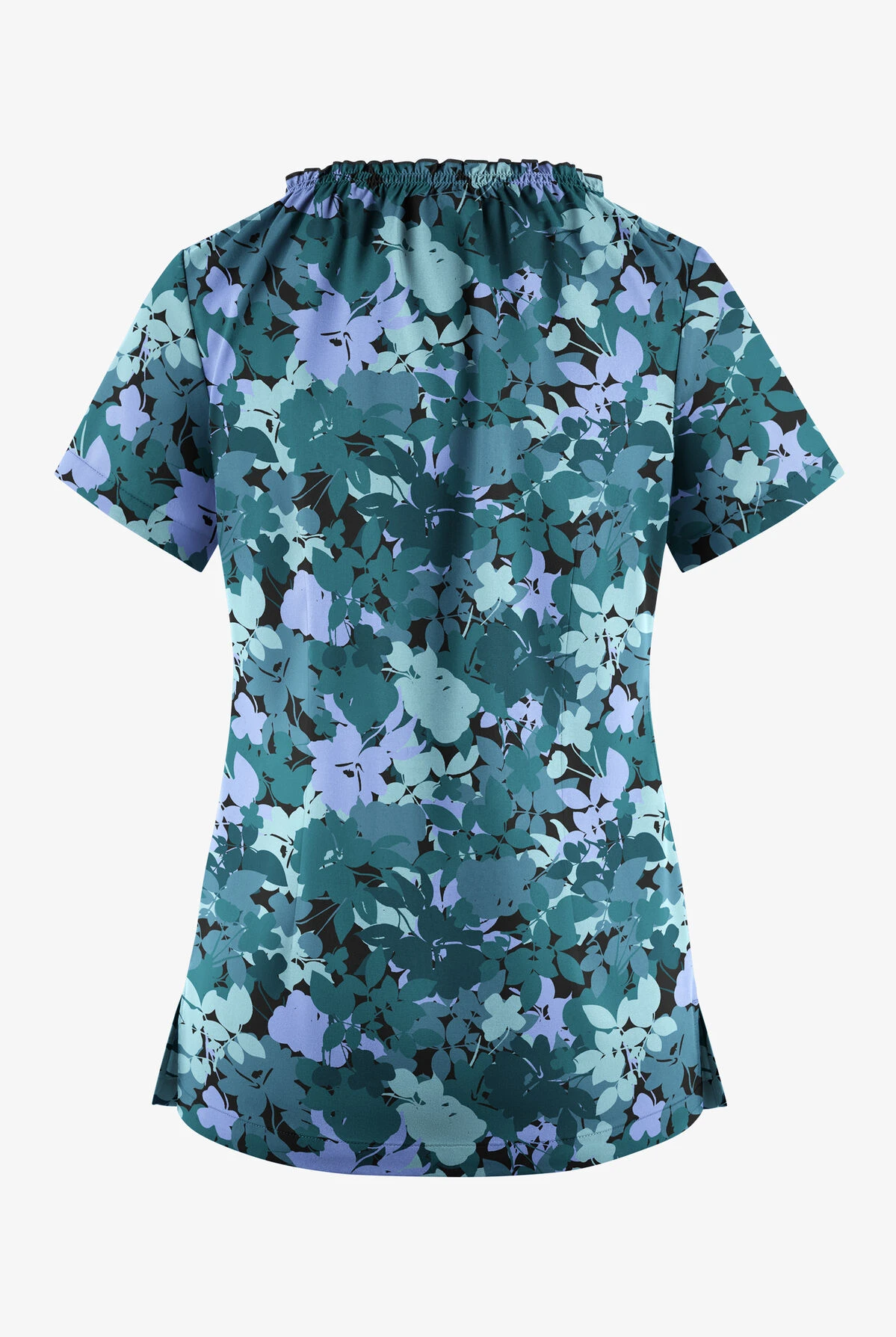 So feminine! From its graceful, gathered neckline to its easy-moving side vents, this peasant scrub top combines fashion and function in one pretty style. 6 pockets give you plenty of storage too. Each piece in our Butter-soft Stretch collection was designed for 12+ hour shifts, and made from easy-care, 2-way stretch comfort fabric. Layers and layers of beautiful blooms. Who wouldn’t love a print like that?