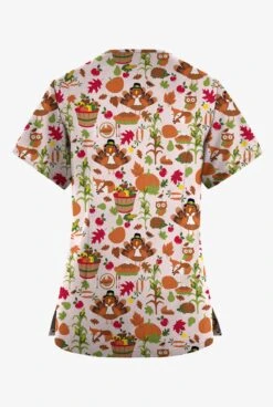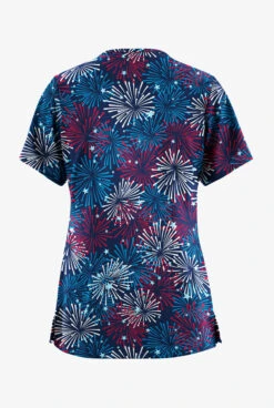 The UA Easter Treats Fuchsia Women’s 3-Pocket V-Neck Print Scrub Top featuring a V-shaped neckline and side slits for ease of mobility. For storage, there are 2 large front pockets and 1 cell phone pocket. Made of 55/45 cotton/poly blend.