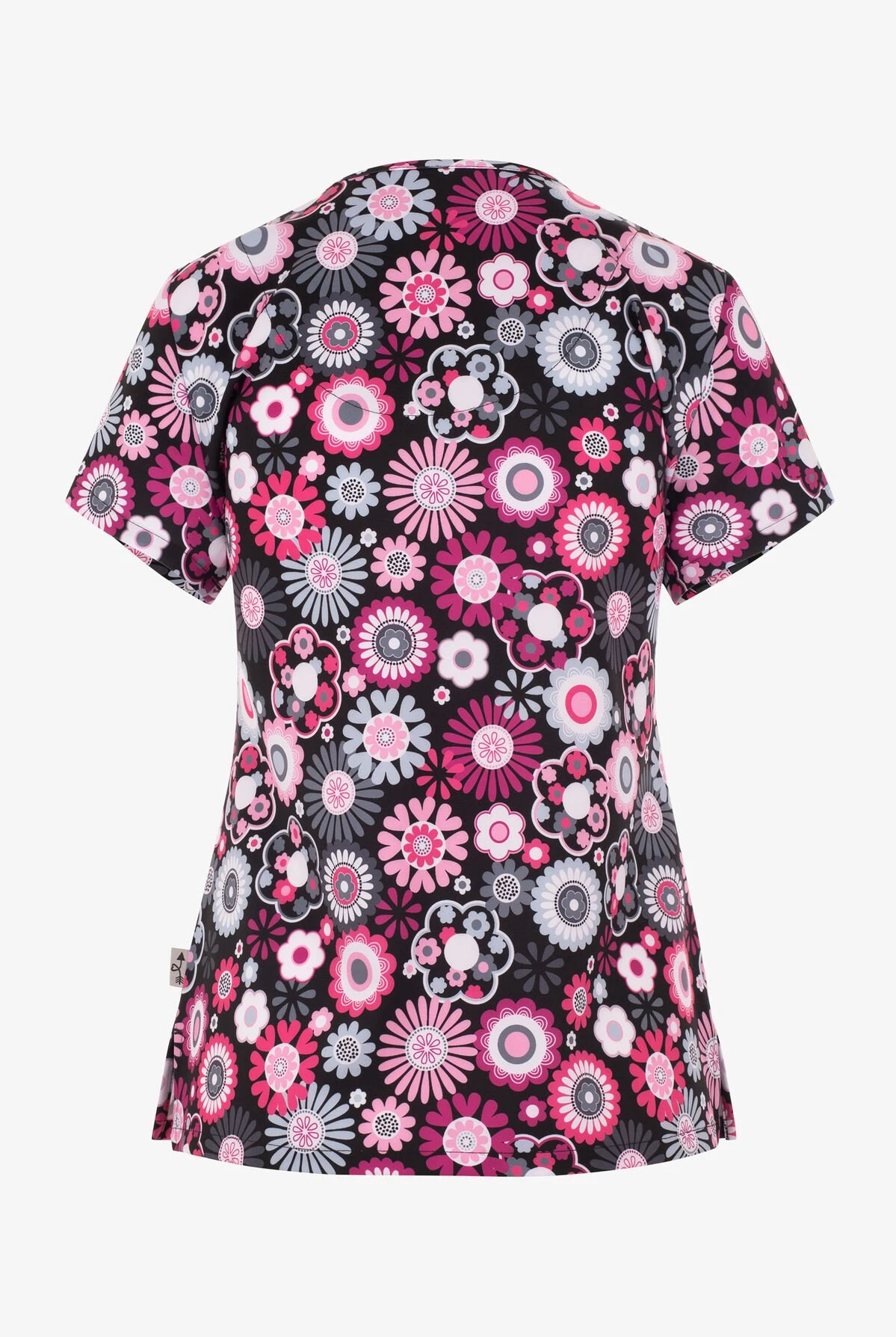 Zavate Ava Therese Pink Energy Floral Women’s 2-Pocket STRETCH V-Neck Print Scrub Top