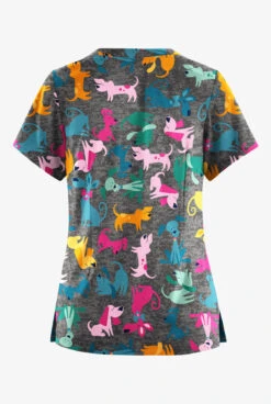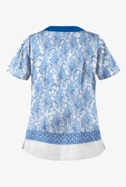 The UA Fabulous Peacocks White Printed Women’s 2-Pocket Mock Wrap Scrub Top is the newest addition to our Best Buy Collection, our mock wrap scrub top can be worn without the worry of opening since it has been sewn closed in the front. This mock wrap top can also be cinched as much or as little as you like with the back ties. For storage, there are two front patch pockets. The side slits included allowing for ease of mobility around the office. This scrub top comes in a variety of fade-resistant colors and is made with easy-care wash-n-wear fabric. Fabric content is 55/45 Cotton/Poly.