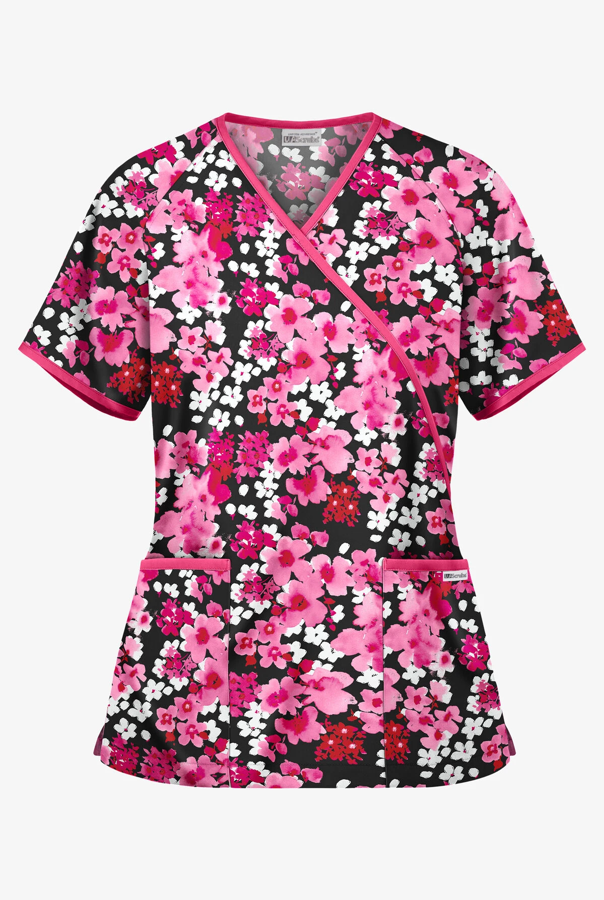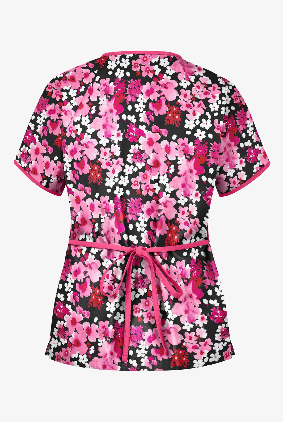 Butter-Soft Originals Floral Batik Women’s 3-Pocket Mock Wrap Raglan Sleeve Printed Scrub Top