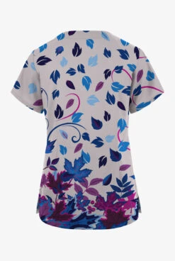 Butter-Soft Originals Autumn Walk Silver Women’s 2-Pocket Scallop Neck Printed Scrub Top