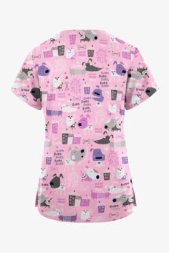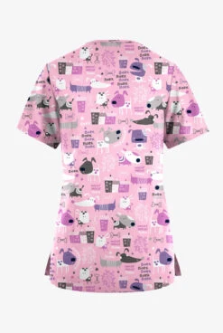 Butter-Soft Originals Bark Park Blush Women’s 7-Pocket Curved V-Neck Printed Scrub Top