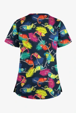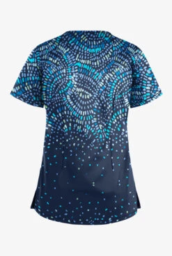 UA Butter-Soft STRETCH Chameleon Adventure Navy Women’s 4-Pocket Crisscross Printed Scrub Top