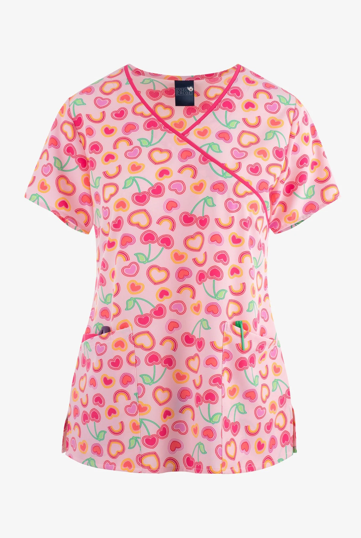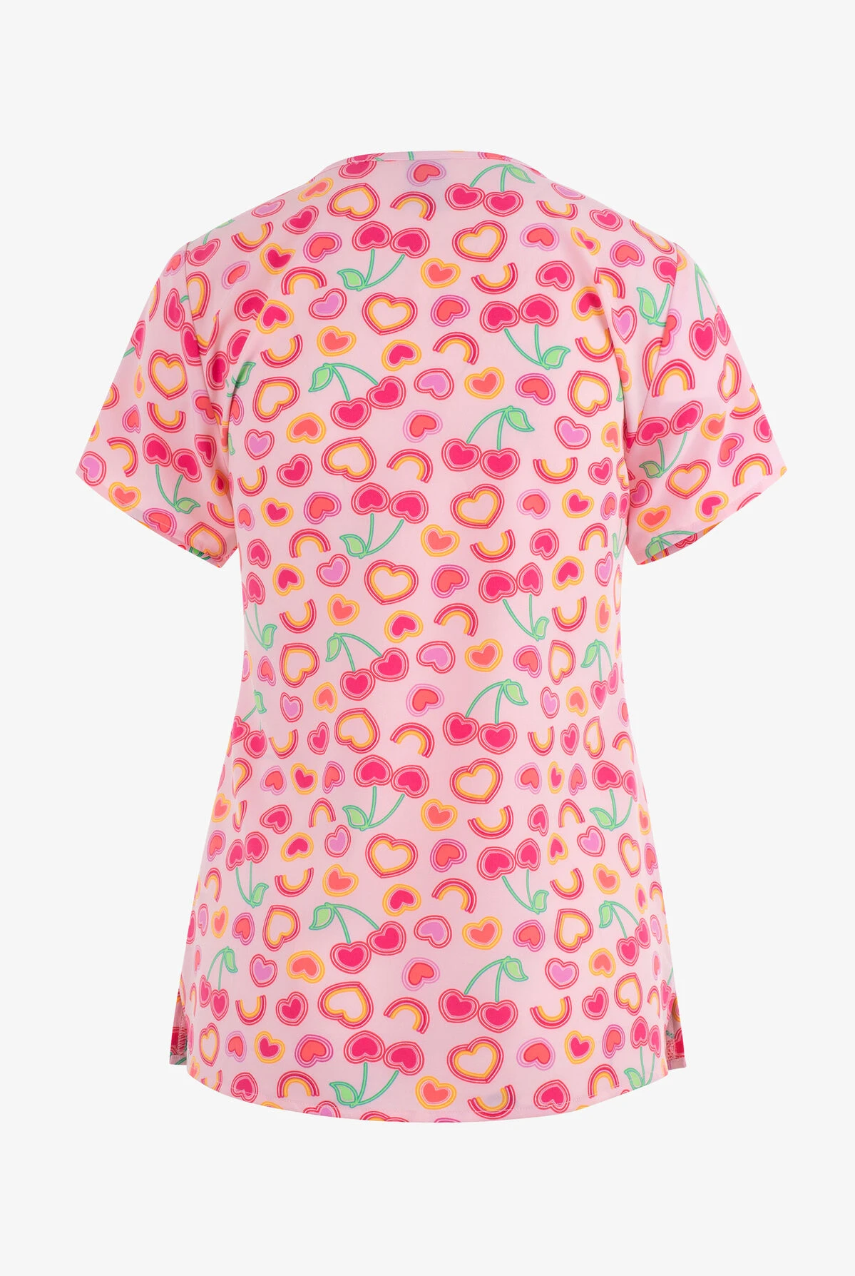 - Hearts, rainbows and cherries in this pink-a-licious print with a Rose Blush background