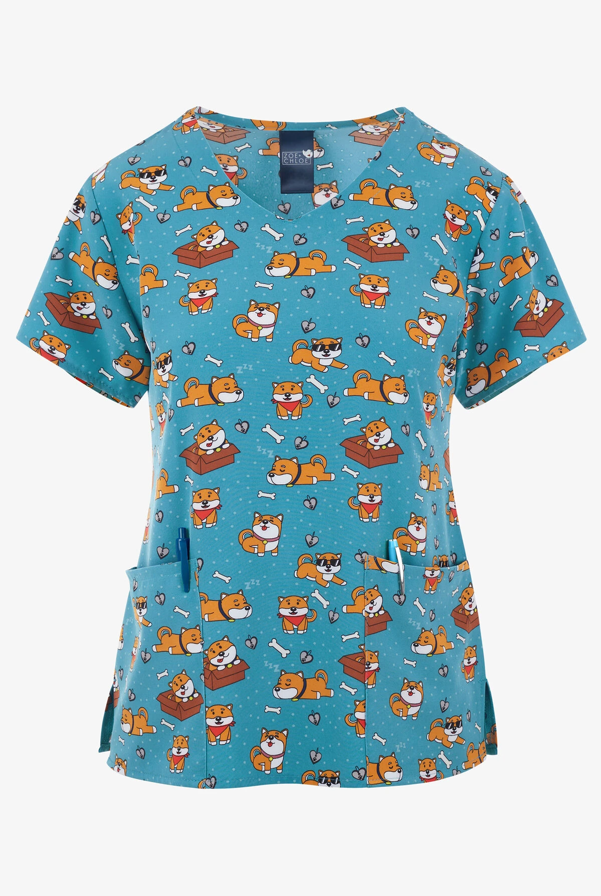 - Sweet Shiba Inu’s on a bone, dog tagged and polka dotted aqua background